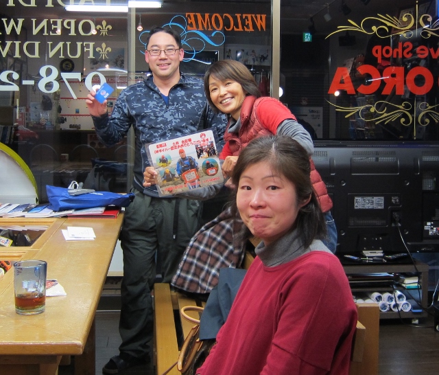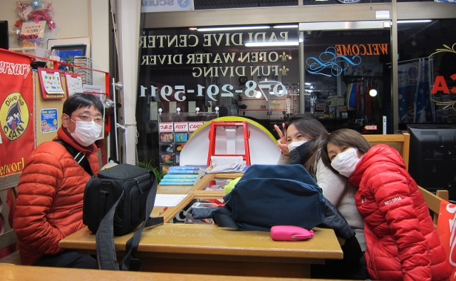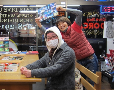 | 2018年1月22日(月) さぁ、今年こそダイビング始めましょ~う! 今日は、開店早々にDさんが淡路島よりお越しくださいました! 今までもダイビングやりたいな~と思っておられたそうなのですが、今年こそ! きっかけもあって、いよいよダイバーデビューされます(*^_^*) まずはお勉強、頑張ってくださいね~♪ そして、夕方には明けましておめでとうございます!なKさんと娘さんもご来店! 今年は少しスタートが遅くなりますが 1800本記念からの2000本目指して、楽しく潜りましょうね♪ ![]() |