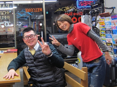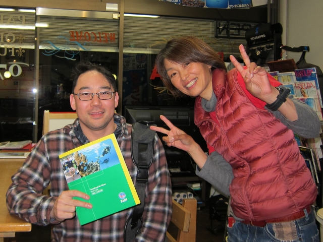 | 2018年1月17日(水) 今年の計画はお早めに! しとしととよく雨の降る1日でした。 でも、すこし暖かだったので良しとします! 明日は晴れますように♪ そんな雨の中をお越しになったのはM様♪ 今週末は串本でAOW講習です! ってことで、ちょっとお勉強です(^-^) 良い感じで仕上げられてます♪ 週末は海も穏やかそうなので、のんびり楽しみながらスキルアップしましょうね~ そして、西表島ツアーでおなじみの次郎さん&千晴さんがご来店でした! ようこそ、いらっしゃいました~!!! もちろん今年も7月にお世話になります! よろしくお願いいたします(≧▼≦) 皆様~!7月の西表島ツアーいかがですか!!! K君もお仕事帰りにお立寄り♪ 公私ともに充実されてるようです! もうすぐ大事な日を迎えますからね。 くれぐれも体調にはお気を付け下さいよ~!!! 皆様はどこへ潜りに行きますか? 早めに今年の計画を立てて楽しく潜りましょう(^_-)-☆ |