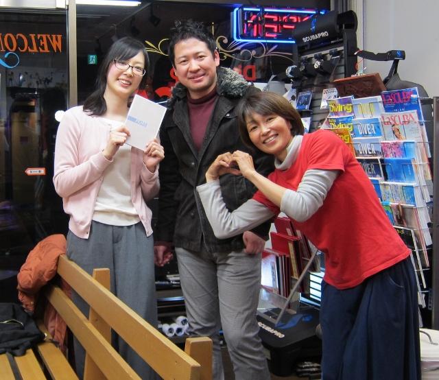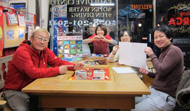 | 2018年3月7日(水) おめでたいっ! 明日からまたお天気下り坂だそうですね~(>_<) でも、週末は晴れ予報なので、よしとしましょう♪ さて、水曜の昼下がり~ KさんとUちゃんがお越しになりました! Kさん、実は私がまだまだペーペーダイバーだった頃に ツアーでご一緒させていただいたこともあるんです~(^-^) また海でも宜しくお願いします!! Uちゃんもパラオのお休み取れてよかったですね~♪ 宜しくお願いします!! ![]() 夜にはおめでたいお二人もご来店♪ 実は・・・婚姻届けの証人欄にサインさせていただきました~(≧▼≦) 実物の婚姻届け初めてみました(笑) 結婚式も近づいてきましたねぇ、末永くお幸せに~(*^_^*) そして、末永くダイビングも続けていきましょうね~っ!! ![]() 明日 木曜日は春の嵐になるそうです。 皆様、くれぐれもお気を付けくださいね(^_-)-☆ お店は嵐がこようがなんだろうが開いてますので 遊びにいらしてくださいね~っ!! |