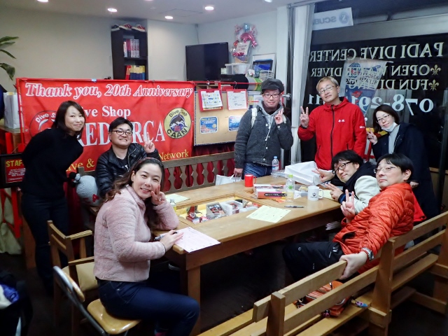 | 2018年2月4日(日) 鬼は~外、福は~内、やってきました! 昨日は節分でしたね~(^-^) ちょうど土曜だったので、串本で豆まきをして、恵方巻をいただいてきました! 昨日はポカポカ陽気だったので、外で「南南東」を向いて 皆で仲良く美味しく恵方巻を食べることができましたよ♪ もしかしたら、毎年恒例になるかも?!気になる方はぜひご参加ください(^_-)-☆ そして、海も最高でしたよ~!!! 今日は波はありましたが、水中の透明度が最高~\(^O^)/ 巨大マダラエイとの出会いや、ステキなシーンがいっぱいでした♪ 帰り道も渋滞なく、スムーズに帰って来れましたね~! お疲れ様でした~!! ![]() えっ、みんなマスクしてる? これは乾燥する季節&電車対策なんですよ~(*^_^*) 皆さんも、元気にこの冬を乗り越えてくださいね! では、明日も皆様のお越しをお待ちしております!! |