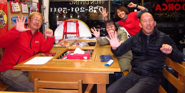 | 2018年2月25日(日) ダイバー誕生です! 串本から帰ってきました~! この週末は、とっても暖かで陸上は快適そのもの♪ 暑がりさんの講習生のDさんは、汗だくになったとか(笑) |