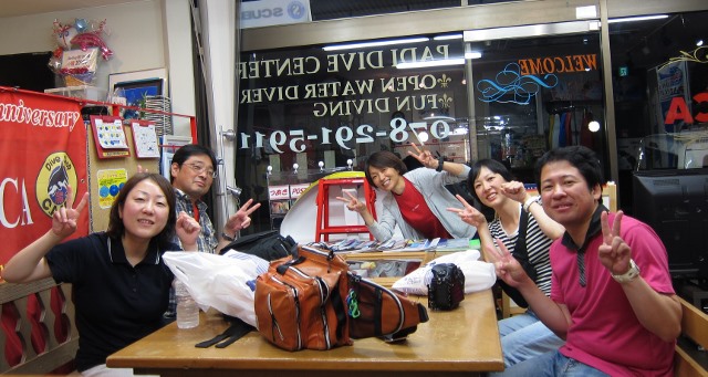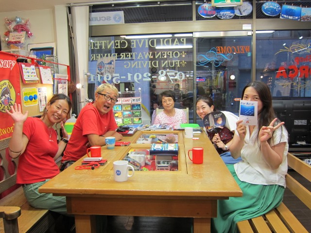 | 2018年7月20日(金) そろそろ夏休み~♪ 7月も3分の2が過ぎましたね~(^-^) 子供たちは、そろそろ夏休みに突入! もちろん、大人だって夏休みを楽しみたいっ!! この夏ダイバーデビュー予定のお二人は2回目の学科講習! 順調に進んでますね~♪ もう一息です、頑張りましょう!! ![]() そして、大人の夏休みがもうすぐ~のSちゃんもご来店♪ 西表島に向けて無事に器材を発送しました! あとは、ちゃんと荷物が届いて、西表島へ行くのみです(*^_^*) 朝の出発時間は早いけど、頑張って早起きしてくださいね~! ![]() 夜には、串本ツアーにご参加の皆様が集合~! 久しぶりの方もいらっしゃいますが、のんびり楽しみましょう\(^O^)/ ![]() それでは、そろそろ串本へ向けて出発いたしまーす!! ~臨時休業のお知らせ~ 大変恐れ入りますが、7月21日(土)~22日(日)は、ツアーのため臨時休業となります。 ご迷惑をおかけしますが、宜しくお願いします。 なお、休業中も、メール及び電話は転送になりますので、 ご用の方はご利用ください! 週末の海の日ツアーのログ&フォトをアップしました! 穏やかで晴天に恵まれた3連休、ご参加いただいた皆様、有難うございました~!