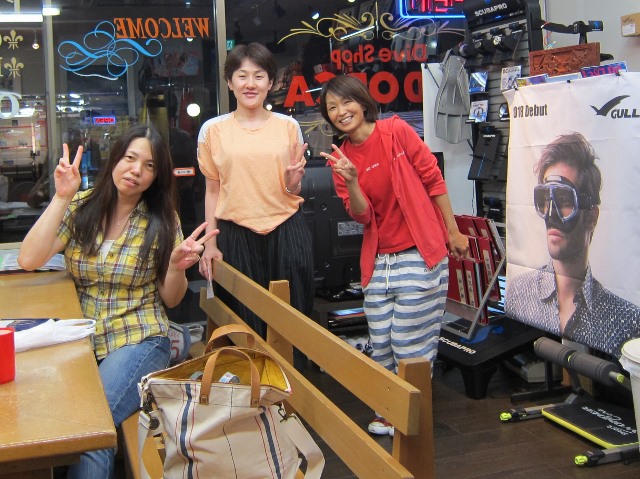 | 2018年7月18日(水) 猛暑が続きます、熱中症にご注意を~! 今日、ニュースでは岐阜県で最高気温が40℃を記録したとか~(>_<) 体温だとしたら、もう平熱を通り越して高熱ですっ! 熱中症で搬送された人数も1万人を超える勢い… 皆様もしっかり水分補給して、対策なさってくださいね(^_-)-☆ そんな気温の中でしたが、 久しぶりにダイビングを復活したい、という方が来られました。 暑いからこそ、海へ行きたくなりますよね~♪ 週末のツアーにご参加いただいたKっちゃんは、 月末の西表島ツアーに向けて器材を引き取りにご来店! 早速、今夜発送されるそうですよ! あとは、もう少し寝ると~西表です~(^-^) ![]() 夜には、学科講習のIさん&Nさんがご来店! お二人の学科中には、 続々と先輩ダイバーの方々も集まって、ワイワイモードになりました\(^O^)/ 今月や来月のダイビング予定も色々決まって、 夏のダイビング楽しみいっぱいですね~♪宜しくお願いします! ![]() お久しぶりのSっちゃんも色々バタバタされてたのも落ち着かれたみたいです。 来月は久しぶりの串本の海、満喫しましょう(^-^) ![]() 週末の海の日ツアーのログ&フォトをアップしました! 穏やかで晴天に恵まれた3連休、ご参加いただいた皆様、有難うございました~!