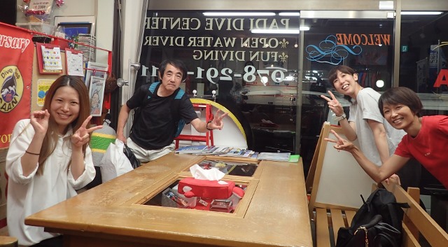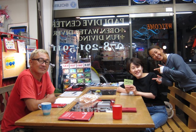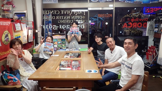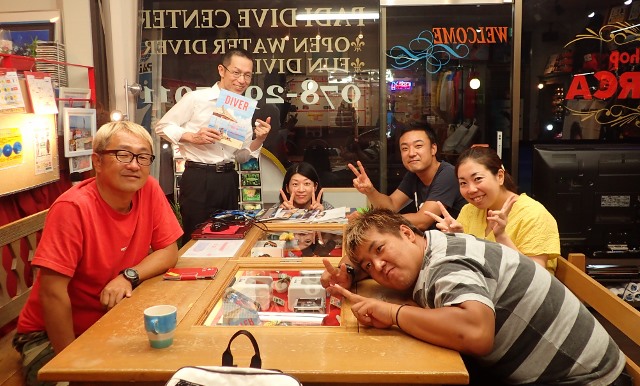 | 2018年7月13日(金) 13日の金曜日でした~(≧▼≦) こうやって、日付を書いてから、今日が13日の金曜日なことに気が付きました( ´∀` ) まぁ、でもあんまり関係ないですかね~♪ お天気もいい金曜日、Mさんは初の学科講習~(^-^) 人生色々なMさんのお話も伺いつつ、順調に進みましたね! 来週も宜しくお願いします! ![]() 夜には、水中写真家の鍵井さんがご来店~♪ 突然のご来店でしたので、ゲスト様にはお声がけできずに残念でしたが