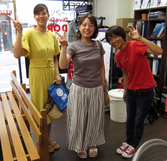 | 2018年7月4日(水) ダイビングしませんか~? 今日は、先日ご来店くださったIさんが、お友達を連れてご来店くださいました! どんどんダイビングの輪が広がりそうですね~(^-^) まずはお勉強、頑張ってくださいね~♪ 宜しくお願いします! ![]() ツアーのお申込に来てくださったのはOさんです! 夏の串本の海、満喫しましょうね♪ ![]() 他にもツアーのお問合せなど、7月に入ってやっぱり夏はダイビングだ~ という感じでしょうか~(^_-)-☆ これから始めたい方も、 すでにCカードは持ってるけど、潜っていないという方も ぜひぜひまずはお店までお話し聞きにいらしてくださいね! ご来店をお待ちしております! さて、平日日帰りツアーができました!7月25日(水)です! 朝6:30にお店出発で串本へ行きますよ(^-^) 水曜がお休みの方や、その日はお休み~、という方はぜひお問合せ下さい! 宜しくお願いします! |