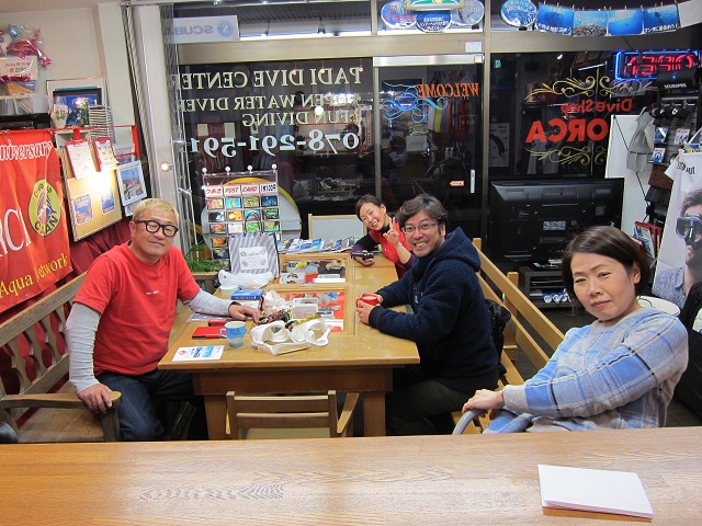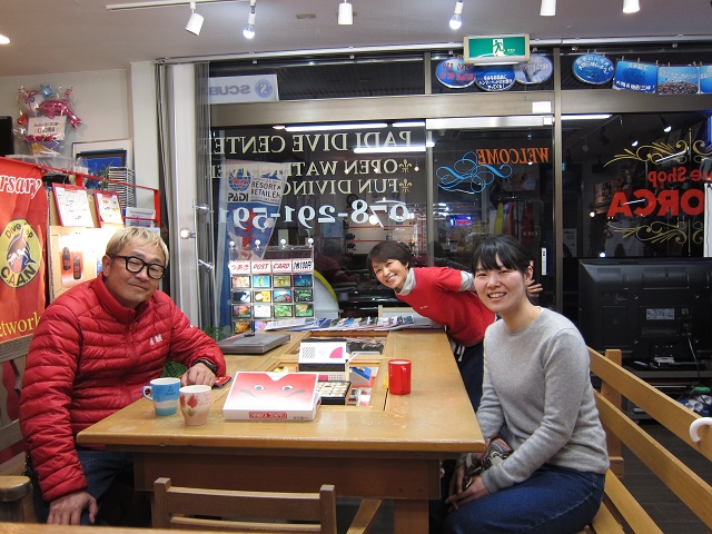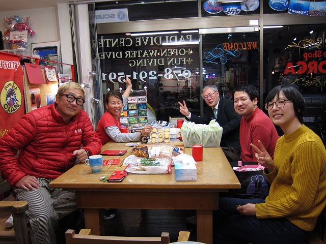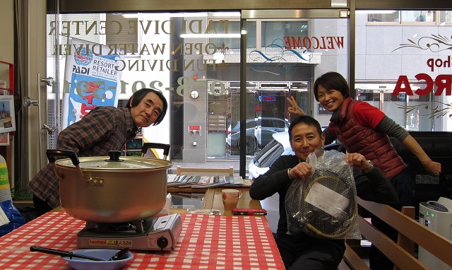 | 2019年1月20日(日) たこパサンデー(´∀`) 昨日は少し水面がパシャパシャした土曜日でしたが、 今日は前日からの予報でボートはクローズに…(>_<) 残念ではありましたが、Yさんのアドバンス講習は無事に修了! そして、お昼からたこ焼き&お鍋パーティーとなりました~♪ もちろん潜れた方がいいのですが、 潜れない時も思いっきり楽しむのがレッドオルカの流儀(笑) ということで、美味しいものをいっぱい食べて、楽しくおしゃべりをいっぱいして、 帰ってきました~\(^O^)/ ご参加いただきました皆様、有難うございました! 来週は穏やかな週末になりますように~♪ ![]() 明日は通常通り営業いたしますので、 皆様のお越しをお待ちしております\(^O^)/ インフルエンザ流行ってきているようですので、皆様くれぐれもお気を付けくださいね! |