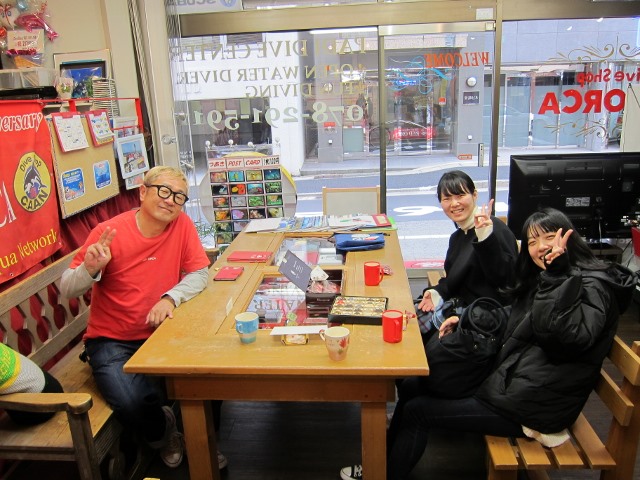 | 2019年2月28日(木) カードゲットだっ! おーっと、気が付けば明日から3月ではないですか~っ\(^O^)/ 本当に1月、2月と時間の過ぎるのがめっちゃ早い!! 明日、当店は23周年を迎えます(^-^) ツアー出発日なので、特に何のイベントもないのですが…(>_<) もしよろしければ、皆様遊びにいらしてくださいね~♪ さて、2月最終日は、昨年OWを取得されたお二人がようやくカードをゲット!! 「怖い」「怖い」言いながらも、最後は笑顔で取得されたお二人(*^_^*) 間があいて、また怖くなっちゃってると思いますが…(笑) またブランク解消にお越しくださいね!! ![]() ご近所にお住いのIさんも合流~っ!! 春ももうすぐそこまで来てますので、お待ちしておりますよ~♪ ![]() 夜には、お仕事帰りのMさんが一生懸命学科講習中!! なんと昨日必死に頑張って予習をしてきてくださったそうです(*^_^*) 1週間前にお申込いただいて、もう今週末には海洋実習行っちゃいますよ~♪ ![]() 頑張りましたね(´∀`) さぁ、楽しいダイビングライフ スタートしちゃいましょう♪ ![]() それでは、また明日~\(^O^)/ ~臨時休業のお知らせ~ 3月2日(土)~3日(日)までツアーのため、臨時休業となります。 皆様には大変ご迷惑をおかけしますが、宜しくお願いします。 なお、休業中はメール及び電話は転送されますので、ご用の方はご利用ください! |