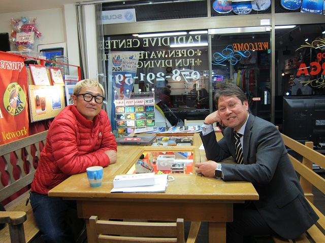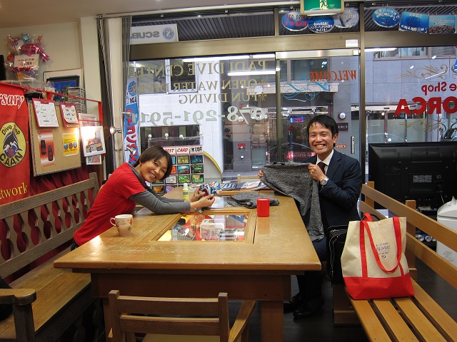 | 2019年1月18日(金) 朝から突然の訪問(^-^) 今日は開店して早々に扉が開きまして 串本の赤鯱ダイビングサービスをいつもご利用いただいているIさん 静岡県にお住まいなんですが、突然の神戸ご訪問でした(^-^) お仕事で時々神戸に来られることがあるそうなんですが、 いつも閉まっていることが多かったようで…申し訳ありません(>_<) またいつでもお立ち寄りくださいね! ![]() ところで、最近ニュースでインフルエンザの大流行が話題になっていますね~! 毎年のことではありますが、なんとかこの冬もインフルエンザから逃げ切りたいものです! フェイスブックのニュースで「インフルエンザ予防に紅茶が効く!」と書いてあったのを読んで 早速紅茶を飲んでいる私(´∀`) ニュースが気になる方はコチラをクリック♪ 信じた方は早速飲んでみてくださいね~! 夜には今週末、海へ行かれる皆様が集合~♪ 初めての冬の海の方もいらっしゃいますが、 対策を万全にすれば、キレイな冬の海は最高ですからね~\(^O^)/ 楽しみましょうね! ![]() それでは、また串本へ行ってまいりまーす!! ~臨時休業のお知らせ~ 大変恐れ入りますが、1月19日(土)~20日(月)まで、ツアーのため、臨時休業となります。 なお、休業中もメール及び電話は転送されますので、ご用の方はご利用ください! |