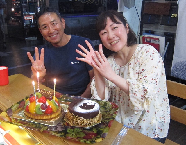 4月5月はお仕事の休みが少なく&新型コロナで職場と家の往復の毎日だったそうで、 とっても久しぶりに三宮へ出てこられたそうです。 偶然にもお越しになったDさんや、Kっちゃんもご来店下さり、 急遽、Sちゃんのバースデーパーティー開催となりました! ![]() 美味しいバースデーケーキも なんと2種類もいただきました♪ ![]() 充実した、楽しい一年になりますように♪ そして、そろそろダイビングも復活して、海を満喫しましょうね(^-^) では、明日も通常通り営業いたします! |
