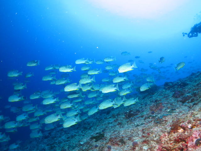 | 2021年5月24日(月) スクーバーダイビングの日です! 今日は5月24日ということで 「ゴー トゥー シー!!」 スクーバーダイビングの日なんですね~(^_-)-☆ 皆さん、ご存じでしたか? 今すぐGo To SEAしたいところですが、 色々な制約で海に来られない皆様が、一日も早く海に行ける日がやって来ますように♪ 週末の海の中は、相変わらずのいつもの平和な世界でした! お魚達は群れ群れ~♪繁殖行動も増えてきましたね! ダイバーに人気のハナイカさんも、ペアで見られましたよ(^-^) ![]() すでに卵を産んでいるのですが、第2弾に向けて、オスがメスに求愛?! でも、なかなか愛は実らず、1ダイブ中、小康状態だったようです(笑) 今週末も会えるといいな~♪ そして、あわよくば、産卵シーンにっ!なんて欲張ってしまいますね! それでは、明日は定休日のため、お休みです。 黄砂がとんでくる予報なので、お洗濯ものなどお気を付けくださいね! それでは、また~!! |
