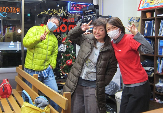 | 2021年12月19日(日) クエ鍋&天才水中写真家を囲む会♪ この週末は串本で潜って、クエ食べて、飲んで、 天才水中写真家 鍵井靖章さんを囲む会も開催(^-^) 土曜日は荒れ模様とにごりもありましたが、 日曜には、嘘のように透明度が回復し、改めて串本の海の力を感じました! そんなツアーにご参加いただいた皆様、 本当に有難うございました\(^-^)/ ![]() また来年もダイビングを通して、楽しい時間を皆様と過ごせればと思います♪ まだ年内に会うかもですが、一応「よいお年を~♪」とご挨拶しましたよ(^_-)-☆ 今年も残すところ10日余りとなって来ましたが、 体調管理に気を付けて、楽しい年末にしましょうね! それでは、また明日~(#^.^#) |